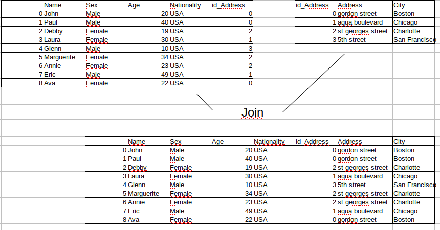 | Name | Sex | Age | Nationality | id_Address | Address | City | |